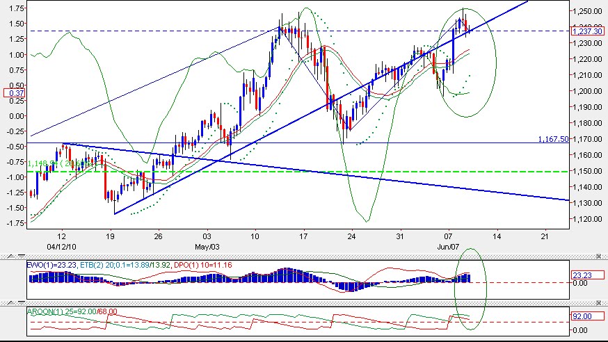 Các mức hỗ trợ : 1,218 – 1,208 -1,200 - 1,196 – 1,187